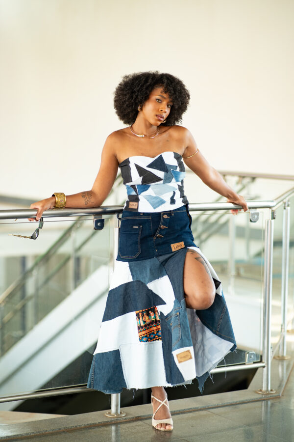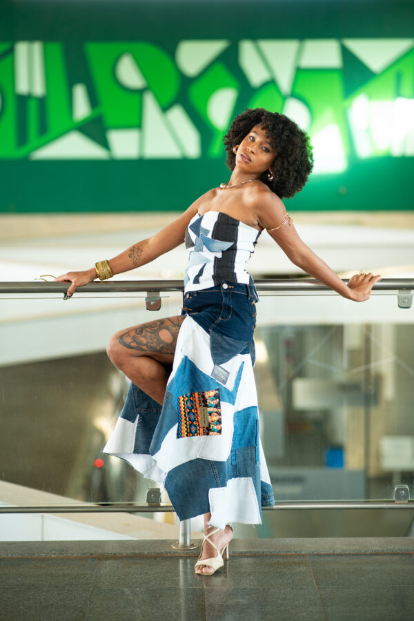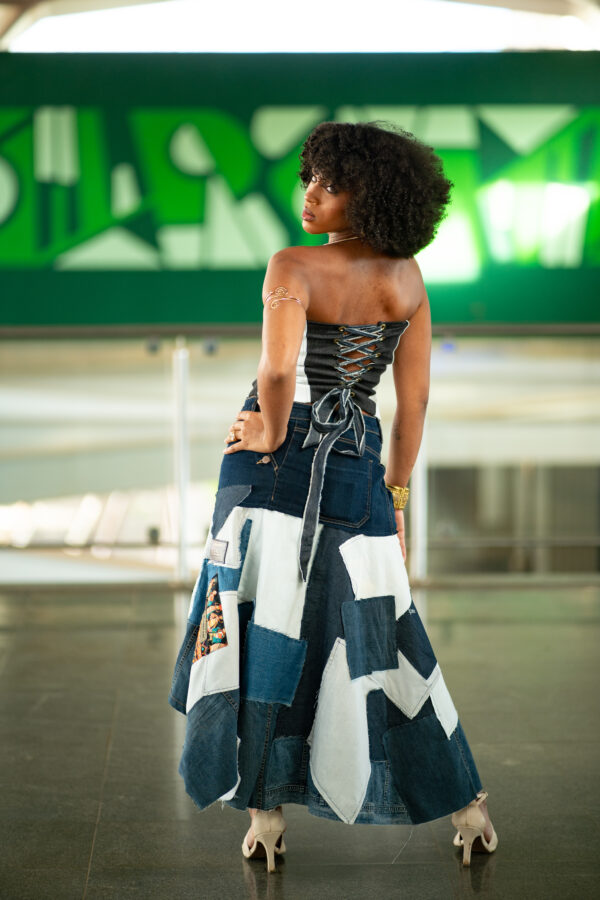 Saia em jeans upcycling.